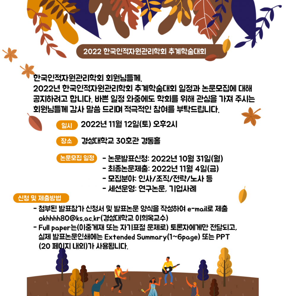 2022년도 추계학술대회개최 안내 작성자 관리자 작성일 22-12-08 13:21 조회수 2,512 본문 2022년도 (사)한국인적자원관리학회 추계학술발표대회 안내 목록목록 이전글 2022년 하계학술대회 개최(안내) 22.12.08 다음글 한국연구재단 학술지 평가 결과 22.12.08